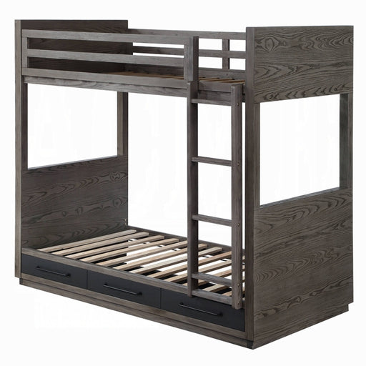 Minimal, clean shapes and lines invite you to rest in this transitional bunk bed. Designed in a weathered taupe finish accented by a dark border al...